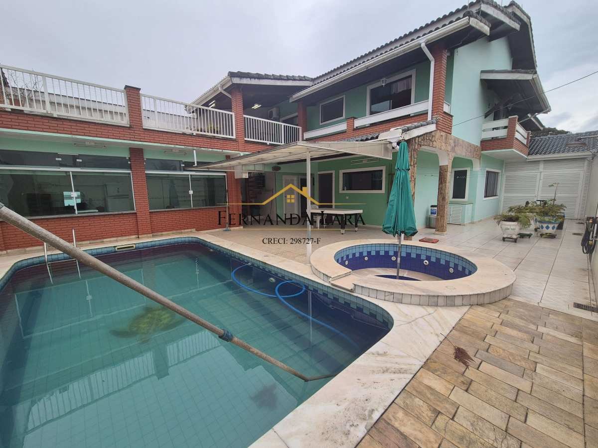 Piscina aquecida, hidromassagem. Possui placas solares para aquecimento da piscina a e hidro. Garagem para 6 carros. Sobrado a venda com PORTEIRA FECHADA!